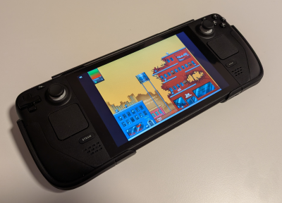 Żeby zagrać na Steam Decku należy dodać grę jako 'Non-Steam Game' i ustawieniach gry wybrać Compatibility Tool "GE-Proton9-27" (na tym konkretym ekran jest dobrze skalowany, ale pewnie inne z wersji 9 też będą działać OK). Następnie należy przypisać klawisze do przycisków na Steam Decku wedle uznania. Po uruchomieniu gry trzeba wybrać tryb graficzny 'Full Screen'.